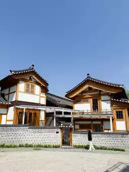 There are two floor-to-ceiling windows on the second floor, from which you can see the Korean house outside.