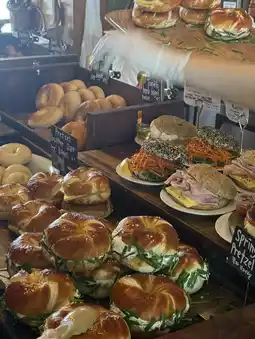 Once you find a seat, head to the counter to choose your bagel 🥯, order your drink, and make payment.