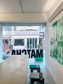 Enjoy the hip atmosphere with a sweet matcha latte🥰
