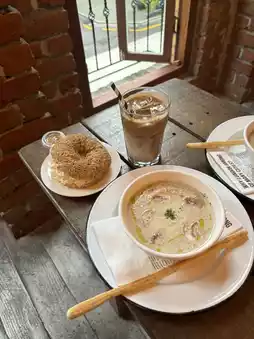 The bagels are delicious, and the mushroom soup is delicious🤤