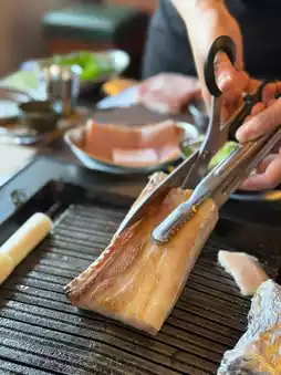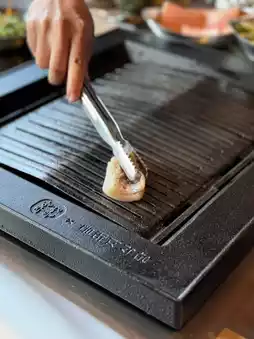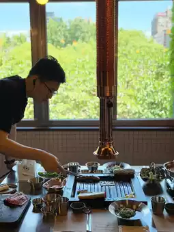 Another thing is that although the Golden Pig Canteen uses gas, there is actually charcoal underneath, so the food tastes like charcoal. Then, because the best time to enjoy the meat is right after it is baked, the service staff will cut a piece of edible size and place it on the edge of the baking tray, allowing diners to take it quickly and freely. The extra ones will be placed on a filter tray on the side.