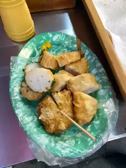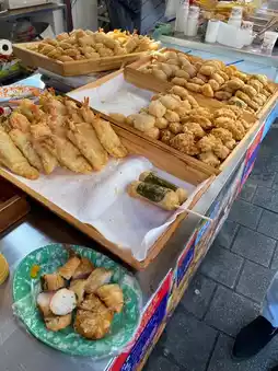 The o-muk skewers here are boiled in hot, clear, fragrant soup. There are many types to choose from, such as fish o-muk and meatball o-muk. It looks very delicious. My stomach can't handle it, but I'm determined to eat it.