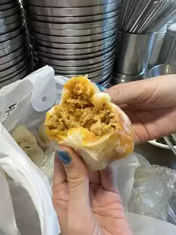 Each dumpling is large and tightly packed, making you feel full. The price is about 1,000 won per piece and 1,500 won for a steamed bun.