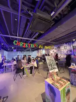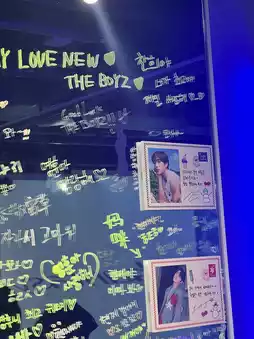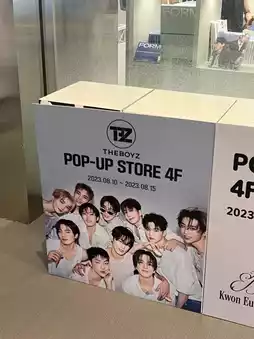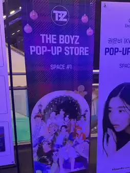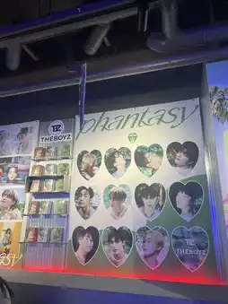 The Boyz Phantasy Pop-up Store at Ktown4u COEX is a fan paradise with cute collectibles, clothing, and a photo zone themed around music videos. The atmosphere is fun, perfect for shopping and capturing memorable moments. There are also events such as when you buy a special drink from the cafe in the store, you will receive a random photocard. There are many photo zones and a board for writing messages.