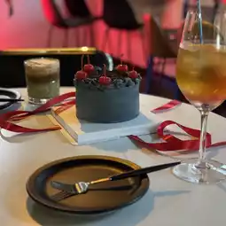 Cherry Chocolate Mini Whole Cake: 22,900 KRW / Sunset Iced Tea: 6,500 KRW