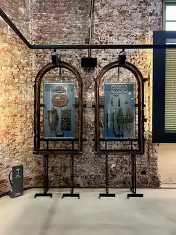 Going up the stairs to the second floor, there are exhibits to learn about the history and structure, with the same brick walls as the exterior. There is also a large room that was used as a dining hall.