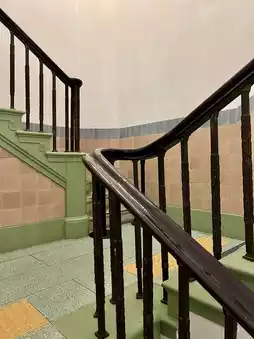 It is a Renaissance-style building, and the hall at the entrance on the first floor is an open-air building with stone pillars, stained glass, elevators, ticket booths and lockers.