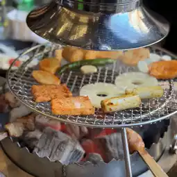 The first floor is for grilling and the second floor is for hot pot, so the space is divided!
