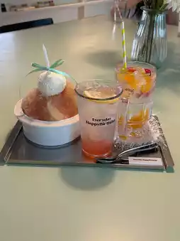 Highlight: A pastel-colored cafe that's picture-perfect from every angle🌟 Their peach shaved ice, loaded with chunks of fruit, is incredibly delicious🍑 With candles included, it's ideal for celebrating a friend's or your favorite idol's birthday❣️
