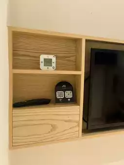The room is very simple yet charming, with a raised bed area and lovely color tones. The toilet and shower room are clean and well-maintained. ✨