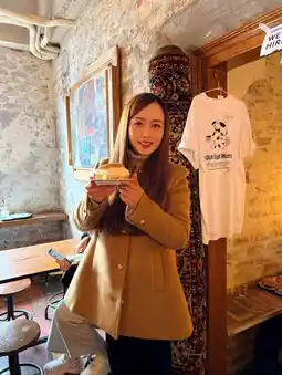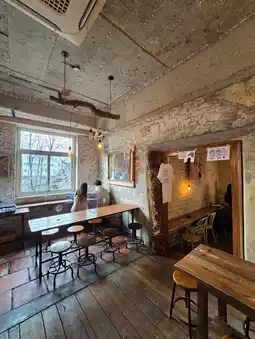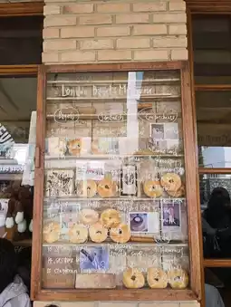 The café's interior exudes an artistic vibe, with vintage wooden furniture and warm yellow lighting that make you feel like you're strolling through the streets of London. ✨ The relaxed and cozy atmosphere is perfect whether you're chilling with friends or enjoying a solo coffee and bagel moment. 😌 Plus, there are plenty of Instagram-worthy spots to snap photos of your bagels and coffee—absolutely stunning! 📸