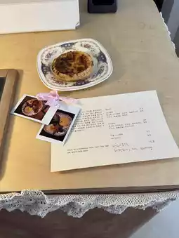Near the register, there's a table with beautifully displayed brioche, making it a great photo spot.