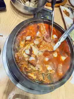 - Seafood soup with live 🐙& abalone and more seafood