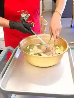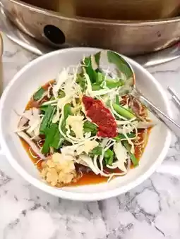 The dipping sauce is prepared by the staff, who also guide you on how to enjoy the dish, making it beginner-friendly 🎵. The dish is loaded with vegetables, making it hearty and satisfying 💯. The meat is tender, and the tteokbokki and potatoes 🥔 are absolutely delicious 💞. The kimchi is flavorful, and you can even ask for refills, ensuring you leave completely full 🎵.