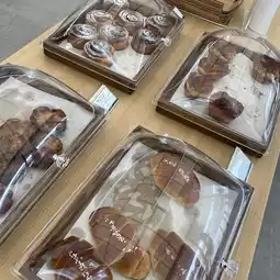 I ordered a cinnamon roll, brûlée cheesecake, an Americano, and a latte on the first floor, then took the elevator to the rooftop to enjoy them, haha. The indoor area tends to echo a bit, so I went to the rooftop, and luckily, the weather was perfect. However, the buzzers don’t work on the rooftop, so I ended up waiting for a while before noticing the sign and going back down, haha.