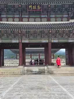 The palace features beautiful traditional Korean architecture, characterized by its elegant roofs, intricate woodwork, and vibrant colors. The palace's layout reflects the principles of geomancy, harmonizing with the surrounding landscape. 🏯