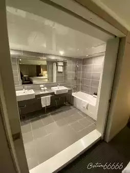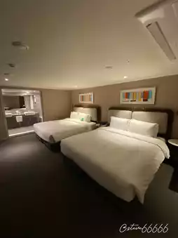 The room is exceptionally spacious, featuring two double beds and ample space to open multiple large suitcases without feeling cramped. The bathroom is equipped with branded toiletries, and the room includes practical amenities such as a mini fridge and a safe. The overall environment is clean, stylish, and comfortable.