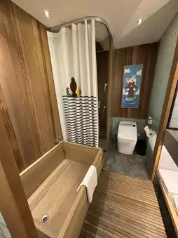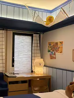 From the moment you step into the hotel, Brown greets you warmly, and once you enter the room, you're surrounded by cuteness everywhere! The hinoki wooden bathtub is a delightful touch, and everything is clean and comfortable✨. Although the location is slightly inconvenient, if you're a LINE FRIENDS fan, this is a must-stay hotel! Highly recommended 💓💓