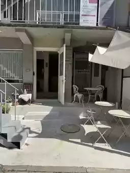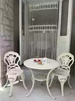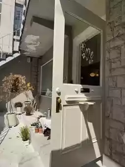 I stopped by a café with a white-themed interior, and the decor and small items were absolutely adorable. 🥰 The terrace seating was charming, and the flowers at the entrance added a lovely touch. 💐