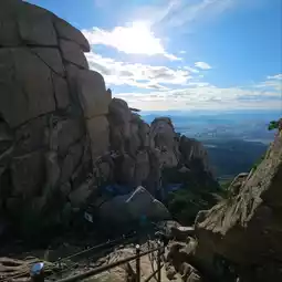 #summervacay Alright, Jaunbong Peak? That trail does not mess around. Started from the Dobong Station side, and within minutes I was already sweating bullets, straight-up stairs, boulders, and some spicy scrambles. This ain’t your chill forest walk. But wow, the terrain is super fun, like nature’s jungle gym. Tons of gnarly rock formations and pine-covered paths that smell like hiking heaven.