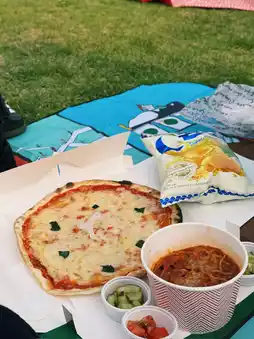 • Mat + mini Bluetooth speaker + pizza = perfection
