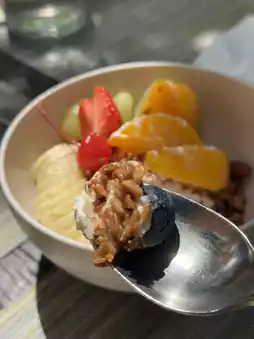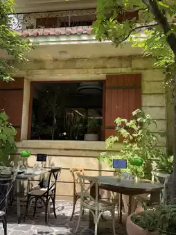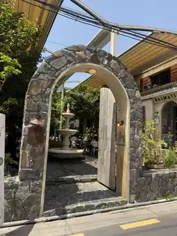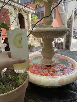 This spacious restaurant features terraces on the first and second floors. The fountain in front of the restaurant is adorable. ⛲️💐🩷