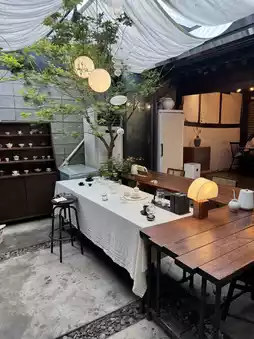 A calm space where vintage furniture and accessories harmonize with the traditional hanok beams, courtyard, and interior that makes use of natural light. Seating is mainly for two or four people, and reservations are also possible.