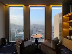 The Palace View toward Gyeongbokgung Palace seems to be assigned to corner rooms or suites. Instead, only one seat in the Club Lounge is set with a Gyeongbokgung view.