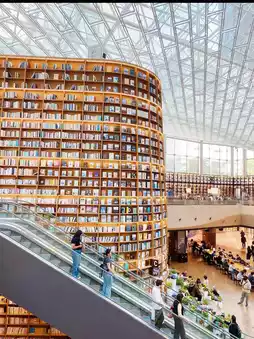 The Starfield Library, located in the middle of COEX Mall in the heart of Seoul, Korea, is a photogenic space with 13m-high bookshelves that reach the ceiling.