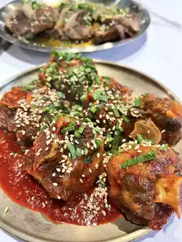 After eating, you can ask the hostess to make some soup. Add some chopped green onions and tofu, and throw in any leftover meat.