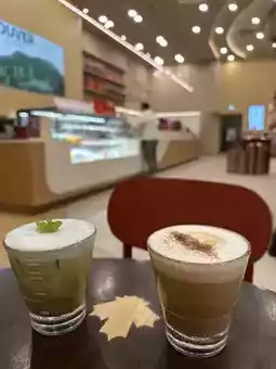 Menu includes Americano, various lattes (Lowide Latte, Wide Latte, Vanilla Latte Zero), Summerade, matcha-choco latte, and cold brew-style Summerade
