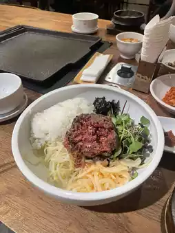 Enjoy Yukhoe Bibimbap exclusively during lunch hours, offering a unique and delicious taste!