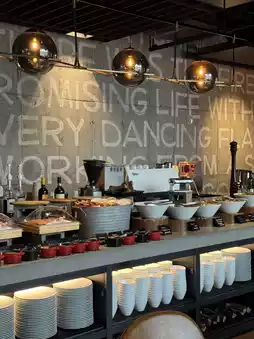 Modern interiors, natural light streaming through large windows, and soothing music create an atmosphere that transforms a simple buffet meal into a leisurely dining experience. Comfortable yet abundant, without the noise 🍽️☀️🎶