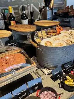 Next to the seafood lies a haven for meat lovers. From steaks grilled on the spot to succulent lamb chops and crispy pork roasts—the juices and aromas envelop your palate, making it the highlight of the day. Whether it's lunch or dinner, you'll find yourself saving a plate for the meats 🥩🔥🍷