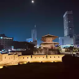Located on the eastern side of the city walls, hence also known as Dongdaemun (East Gate).