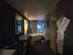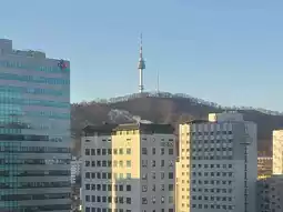 When I pulled up the blinds, I was greeted with a direct view of Namsan Seoul Tower from the bathtub. Wow! It was closer than I expected, and the tower view combined with the spacious bathroom was fantastic.