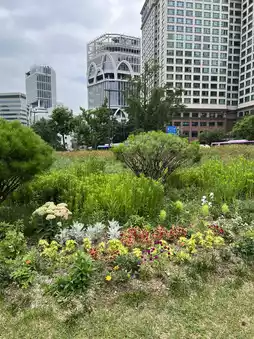 🌳 Moving past Gwanghwamun, I arrived at Open Songhyeon Park. Although one side of the park was covered due to construction for new facilities, I was greeted by an array of beautiful flowers.