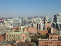 I entered the room. The room size is definitely larger than the twin room. The path to the terrace is also cleaner. The view is wide open to Myeongdong Cathedral. You can also see Lotte World Tower from here.