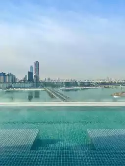 Infinity pools 🏊♂️ are something many people have experienced, but an outdoor infinity heated pool is undoubtedly a "high-cost" investment for hotels. Just imagine, in Seoul's freezing weather, it takes massive electricity and resources to allow guests to sit in a jacuzzi surrounded by steam while enjoying a panoramic view of the Han River 🫧.
