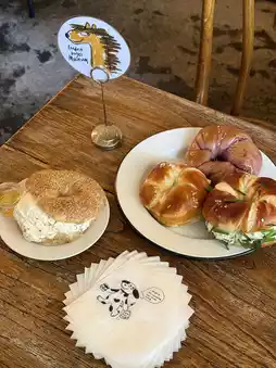 They offer a wide variety of bagel flavors, perfect not only for brunch but also for afternoon tea or dessert. They're so delicious that you'll want to grab a few to go. Their most popular flavor is the scallion cheese bagel with truffle mushroom soup—delicious and filling.