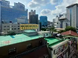 Even though it's narrow, it's a hotel that meets the needs of Japanese tourists by installing a bathtub and bidet. The windows open wide. You can see the Hanjin Building and Le Meridien Myeongdong.