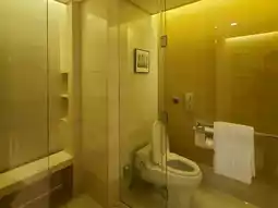 The bathroom has a large, independent shower booth, and the bathtub is long and deep. 😀 There's also a TV in the sink. 😍 But there's no bidet. 🤣