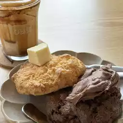 I ordered the Einspänner (₩5,500) and a butter scone (₩4,000). The coffee arrived layered—espresso topped with fine cream that blends smoothly if you don’t stir it immediately. The scone was crisp on the outside, buttery and tender inside. I appreciated how the simplicity of both items reflected authentic craft and quality .