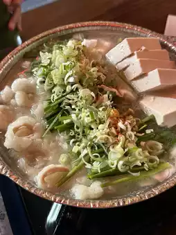 The soup of motsunabe gets oily later, so eat a lot when it's hot!