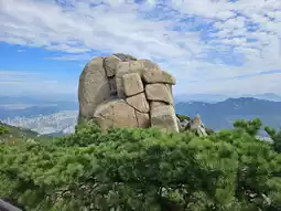 🍁As I reached the summit, there were many rocky sections, and there were a few places where I had to use my hands to climb. It wasn't difficult, but I had to be careful. From the summit, I could see the entire Seoul city at a glance, which made me feel refreshed.