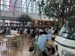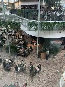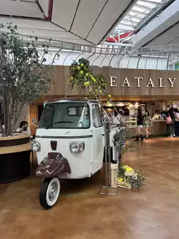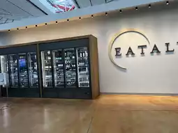 • EATALY features separate café and restaurant spaces with an open kitchen, creating a modern and airy atmosphere. Natural lighting enhances the dining experience.