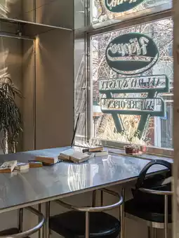 The interior isn't large, but the flow is fluid. The decor is simple yet thoughtful, and the abundant natural light floods the space, making it a perfect place to sit and relax with a pour-over or latte. The desserts are also excellent, with the handmade scones and lemon pound cake being highly praised.
