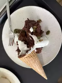 The dessert called OOPS! CHOCO is a signature sweet that looks cute and tastes delicious 🍦 This was also delicious, with moist, smooth chocolate, cream, and a crunchy corn. 🩷