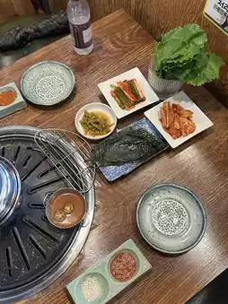 I tried Mineral Samgyeopsal as part of my Gwanghwamun date! The clean and luxurious atmosphere from the entrance heightened my anticipation. ⬆️ The meat was grilled on a special mineral salt plate, preserving its juices and removing any odors, resulting in a truly light and tender dish! It was so refreshing, I couldn't believe how clean samgyeopsal could be. 🤤 The vegetables for the wraps were fresh, and the side dishes were well-prepared, so I was very satisfied with the overall quality.