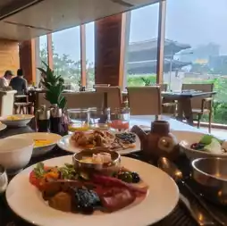 The festive season buffet features an extravagant menu. It's truly a feast with dishes that could make the table legs buckle. King crab, lobster, roast turkey, tomahawk steak, and lamb chops all vie for the spotlight.